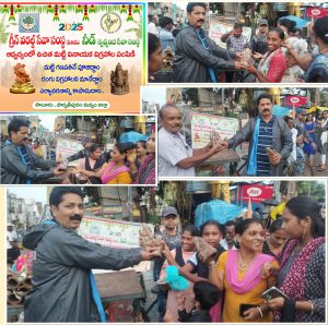 మట్టి తో తయారుచేసిన ప్రకృతికి హానికరం కాని వినాయక విగ్రహాలతో ఈ వినాయక చవితిని ఆనందంగా బాధ్యతగా జరుపుకోవాలని నీడ్ సభ్యులు పి. వేణుగోపాలరావు, మోహన్ ,వంశీ గ్రీన్ వరల్డ్ సభ్యులు సంతోష్ కుమార్ శర్మ పాణిగ్రాహి, చప్ప శ్రీరామ్ పిలుపునిచ్చారు. ప్లాస్టర్ అఫ్ పారిస్ వినాయకుల వల్ల ప్రకృతికి హానికరం ఈ కారణం చేత మట్టి వినాయకులతో 2025 వినాయక చవితి సంబరాలు అంబరాన్ని తాకేలా సరదాగా జరుపుకోవాలని కోరారు. సుమారు 551 మట్టి వినాయకుల పంపిణీ ఆగస్టు 26 మంగళవారం సాయంత్రం స్థానిక బోసు బొమ్మ సెంటర్ లో పంపిణీ చేశారు.