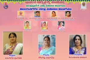 ప్రపంచ ఆర్యవైశ్య మహాసభ, ఆంధ్రప్రదేశ్ నార్త్ ఏరియా మహిళా విభాగము,విజయనగరం జిల్లా మహిళా విభాగం నూతన కార్యవర్గం కొలువు తీరింది.ఉమ్మడి విజయనగరం జిల్లా మహిళా విభాగం అధ్యక్షురాలు గా పలుకూరి ప్రభావతి ఉమ్మడి విజయనగరం కార్యదర్శి గా కోలగట్ల
