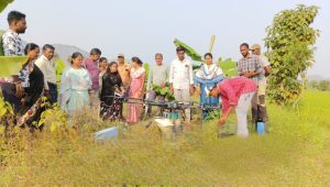 తాడింగివలస వలస గ్రామంలో శుక్రవారం బొమ్మనేని శ్రీను అనే రైతు డ్రంసీడర్ పద్ధతుల్లో వ్యవసాయం కొనసాగిస్తూ డ్రోన్ ఉపయోగించి ప్రకృతి వ్యవసాయం ద్వారా తయారుచేసిన దశపర్ని మీనామృతం కలిపి వరి చేనుకు ఐదు ఎకరాలు స్ప్రేయింగ్ చేయించడం జరిగింది. ఈ స్ప్రేయింగ్ వల్ల ఉపయోగాలు దశపర్ని కషాయం వలన పురుగులు, తెగులు కంట్రోల్ చేయడం జరుగుతుంది. అదేవిధంగా గ్రోత్ ప్రమోటర్ గా ఉపయోగపడుతుంది. ఇందులో మీనామృతం కూడా కలపడం వలన దిగుబడికి గింజ నాణ్యత బరువు మెరుపు దిగుబడికి కూడా ఉపయోగపడుతుందని వ్యవసాయ అధికారి కే .శిరీష తెలిపారు.ఈ విధంగా రైతులందరూ ప్రకృతి వ్యవసాయం ద్వారా చేసిన కషాయాన్ని ఆరోగ్యం కొరకు స్ప్రేయింగ్ చేస్తూ తక్కువ ఖర్చుతో ఆరోగ్యాన్ని పొందుతూ, ఎక్కువ దిగుబడిని పొందగలరని కోరారు. ఈ కార్యక్రమానికి వి ఏ ఏ లు, ప్రకృతి వ్యవసాయ సిబ్బంది, రైతులు పాల్గొన్నారు. తక్కువ సమయంలో ఎక్కువ పొలాలకు స్ప్రేయింగ్ చేయుటకు డ్రోన్ పద్ధతిని అందరూ ఉపయోగించవలెను అని కోరటం జరుగుతుంది.
